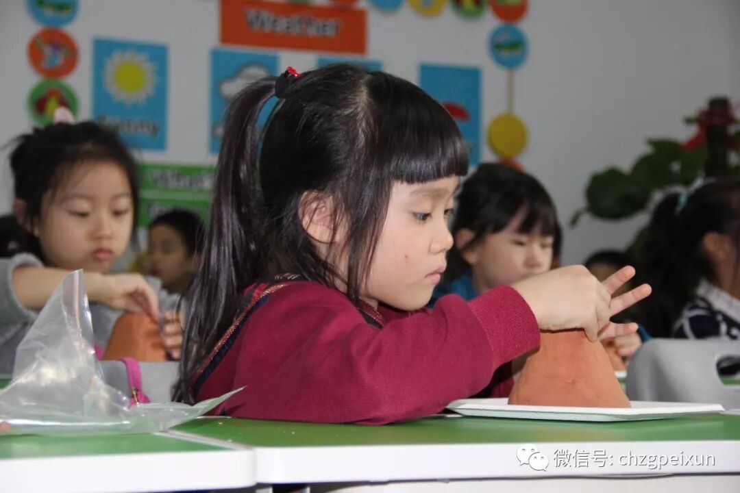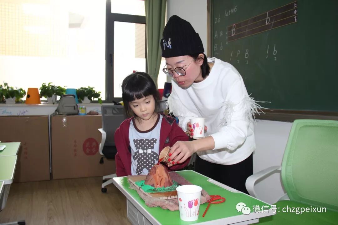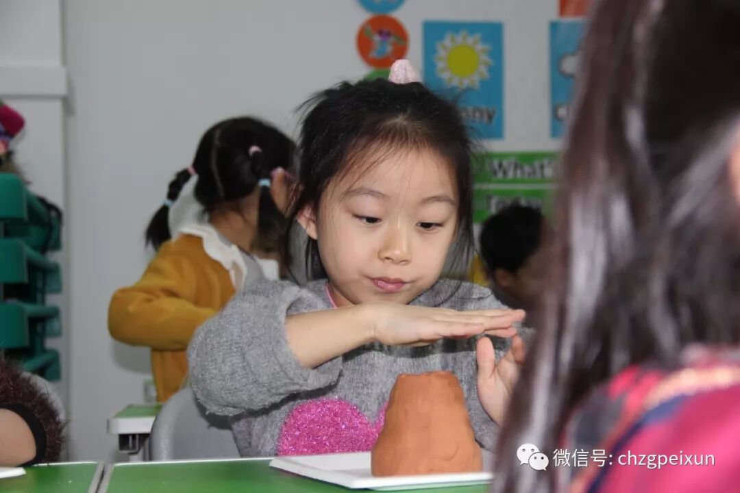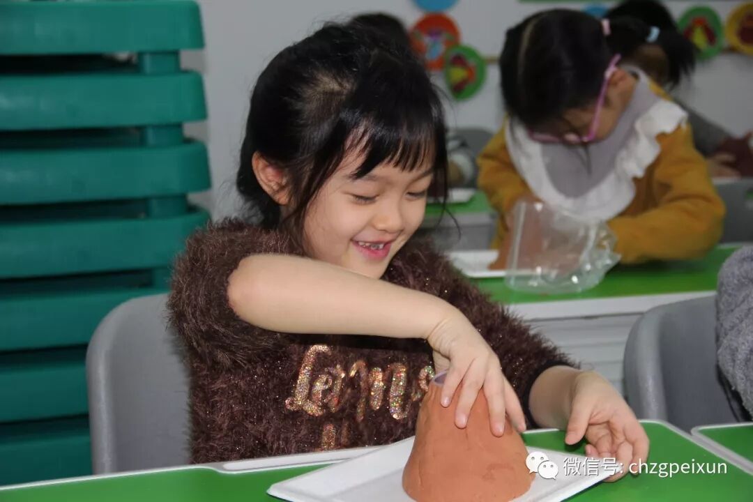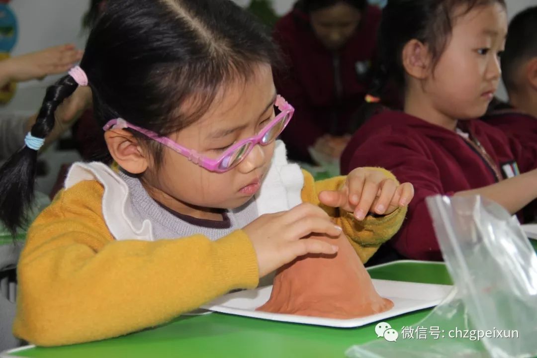 蔻蔻老师告诉孩子们:“下半节课,我们每个学生都可以动手,自己完成一个属于自己的火山模型!”