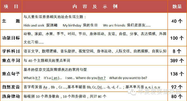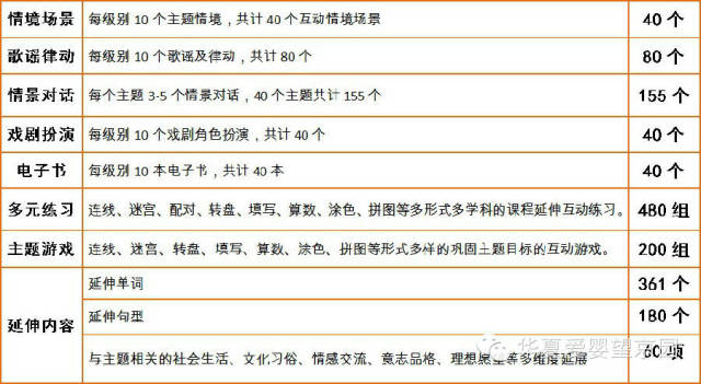 课程根据儿童的年龄特点分为四个级别,共有四十个主题,以月主题的形式开展语言教学。不仅培养语言智能,同时培养儿童音乐、数理、自然、交往等多元智能。具有课程的整体性、递进性和系统性。