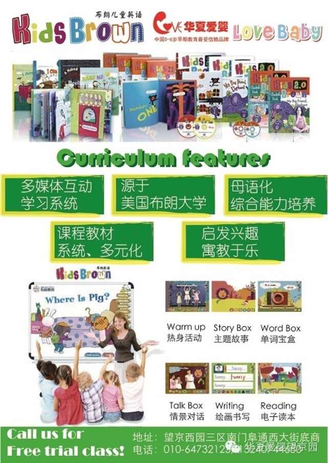 9月份开始,华夏爱婴望京园会开设外教课程“多媒体互动式英语课程(3-5岁)”,通过多媒体电子白板和外教老师与孩子的互动,增加孩子对英语的兴趣和认识。如果家长有兴趣,欢迎提前致电预约试听课。