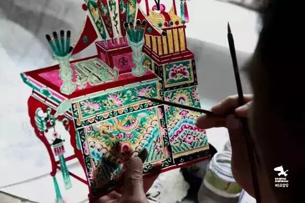 雕刻完成的皮影人还要经过着色、上漆、装订、安杆等步骤,一件皮影人就做好啦。北京城的皮影,从造型到制作方法和其他地方的皮影都不一样。北京皮影的造型更多地借鉴了京剧戏装的造型图案。